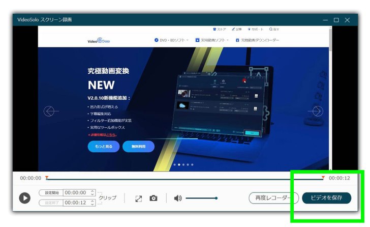 もし必要ならば、VideSoloスクリーン録画のソフトの無料お試し版を以下よりインストールして、実際に使ってみてください。