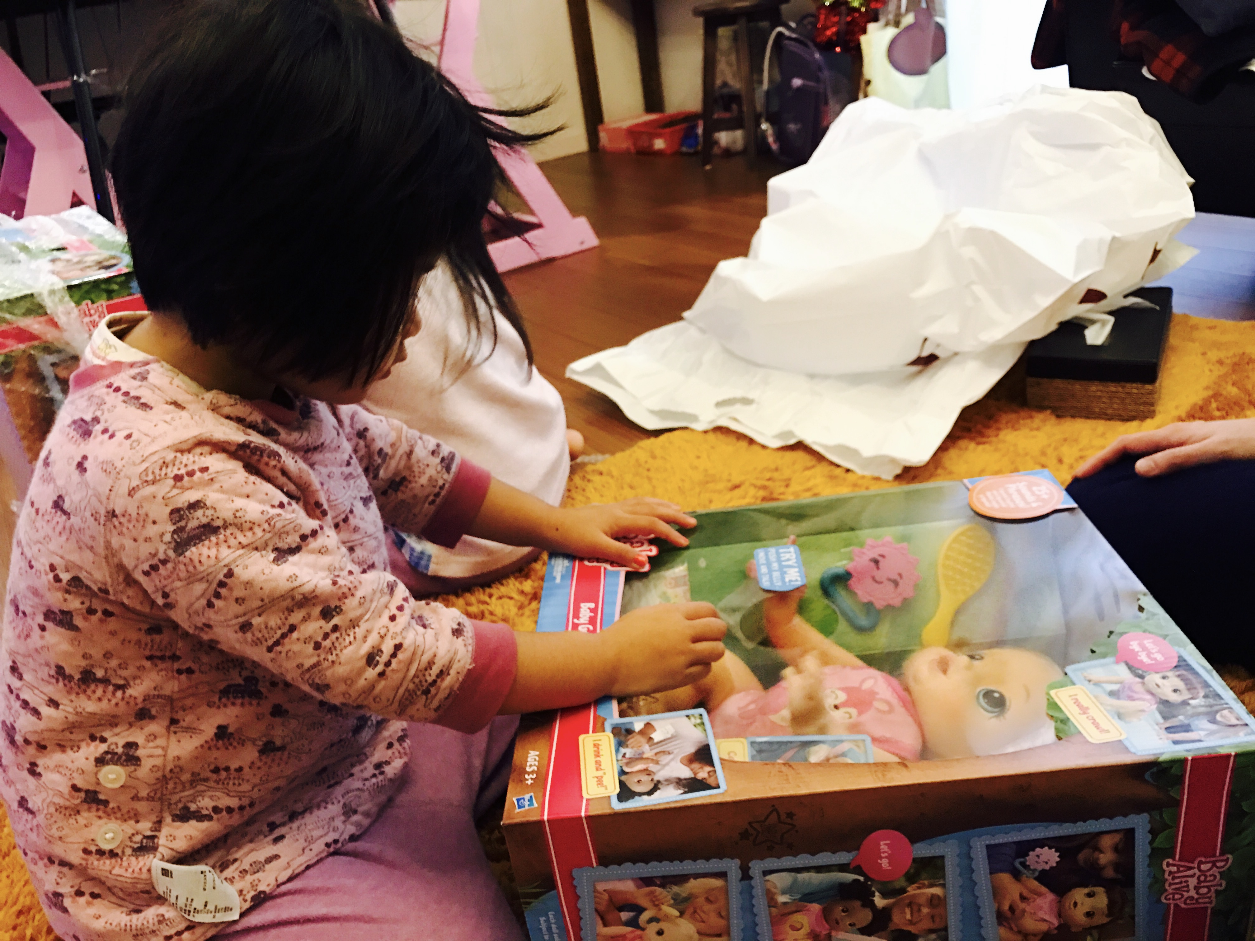 今年のクリスマスプレゼントは、Baby Aliveというお人形さんでした。しかも姉妹とも同じものです。